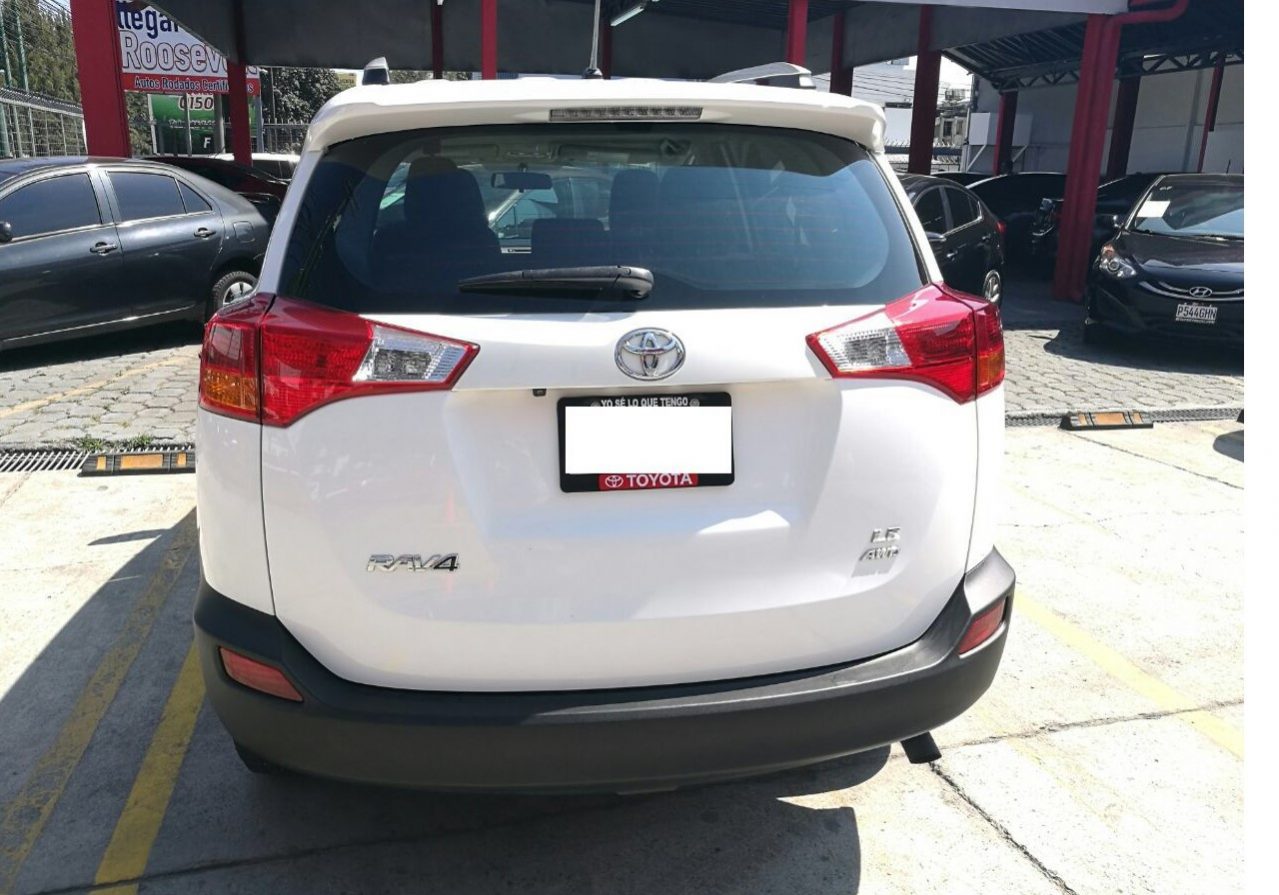 Toyota Rav4 2014 4×4. Extras: A/C: frente, Cierre central, Control de crucero, Radio CD/cassette, Reproductor MP3/WMA, Reproductor DVD/pantalla LCD, CD changer, Entrada conexión a iPod, Bolsa de aire: conductor, Bolsa de aire: pasajero, Bolsa de aire: laterales, Frenos antibloqueo (ABS), Halógenos antiniebla, Forros/tapizado, Vidrios eléctricos, Desempañador vidrio trasero.